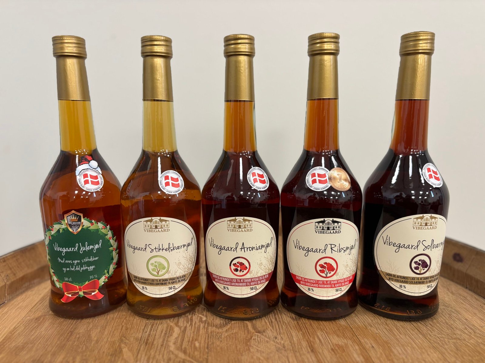 Brygget på dansk honning, rørsukker og Vibegaards egne bær.