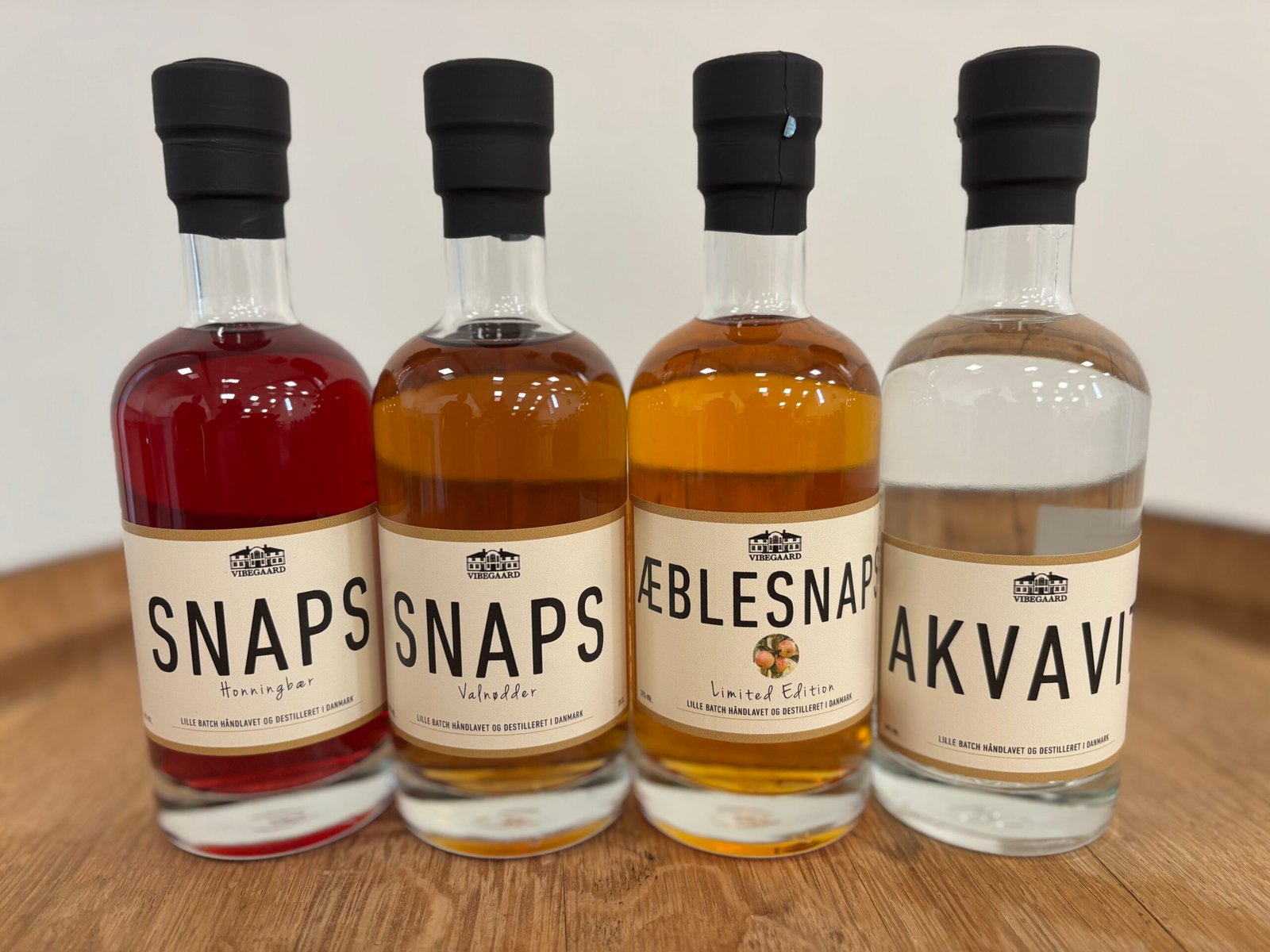 Akvavit, Valnød, Honningbær og en æblesnaps alle 20cl.